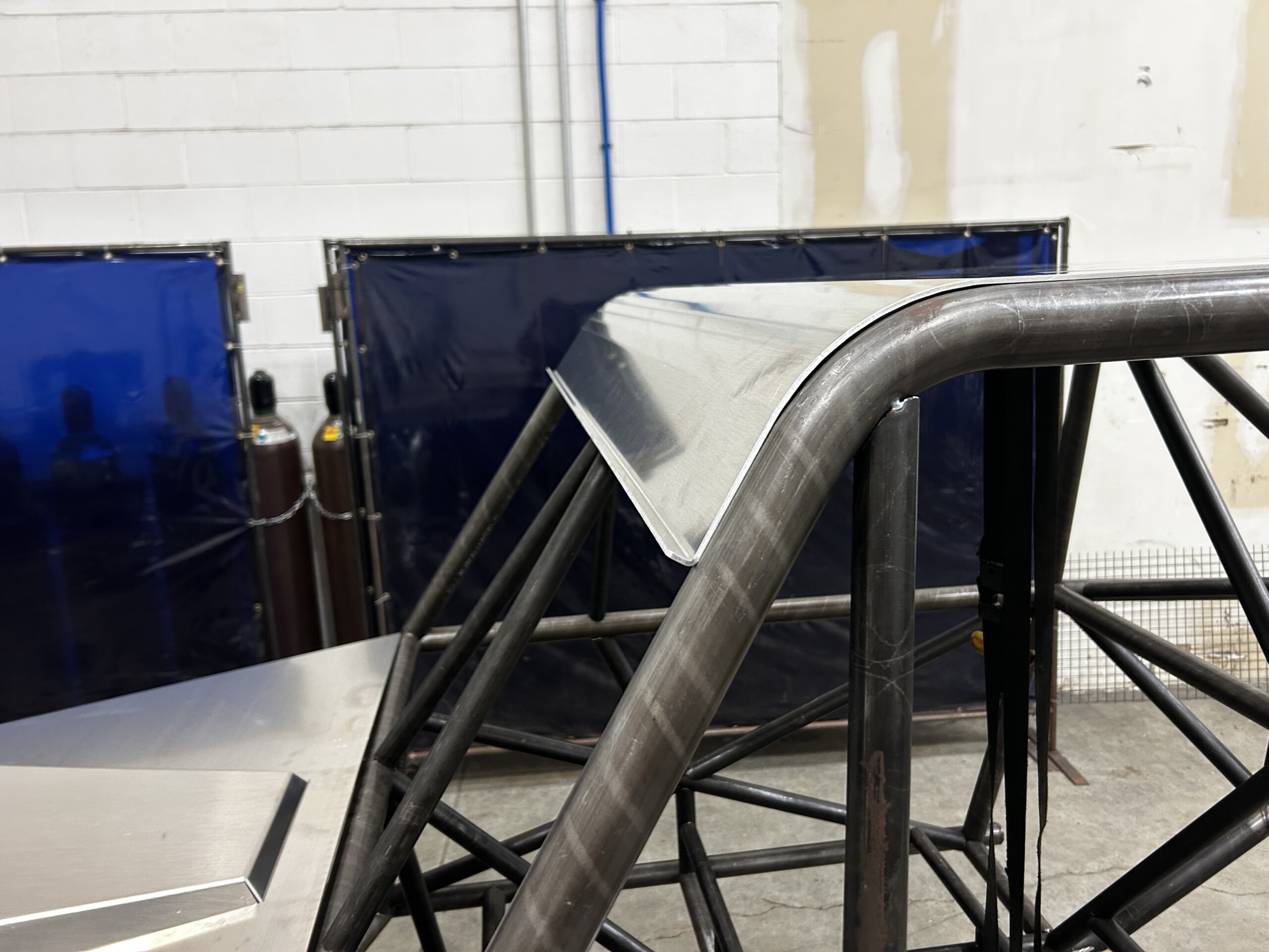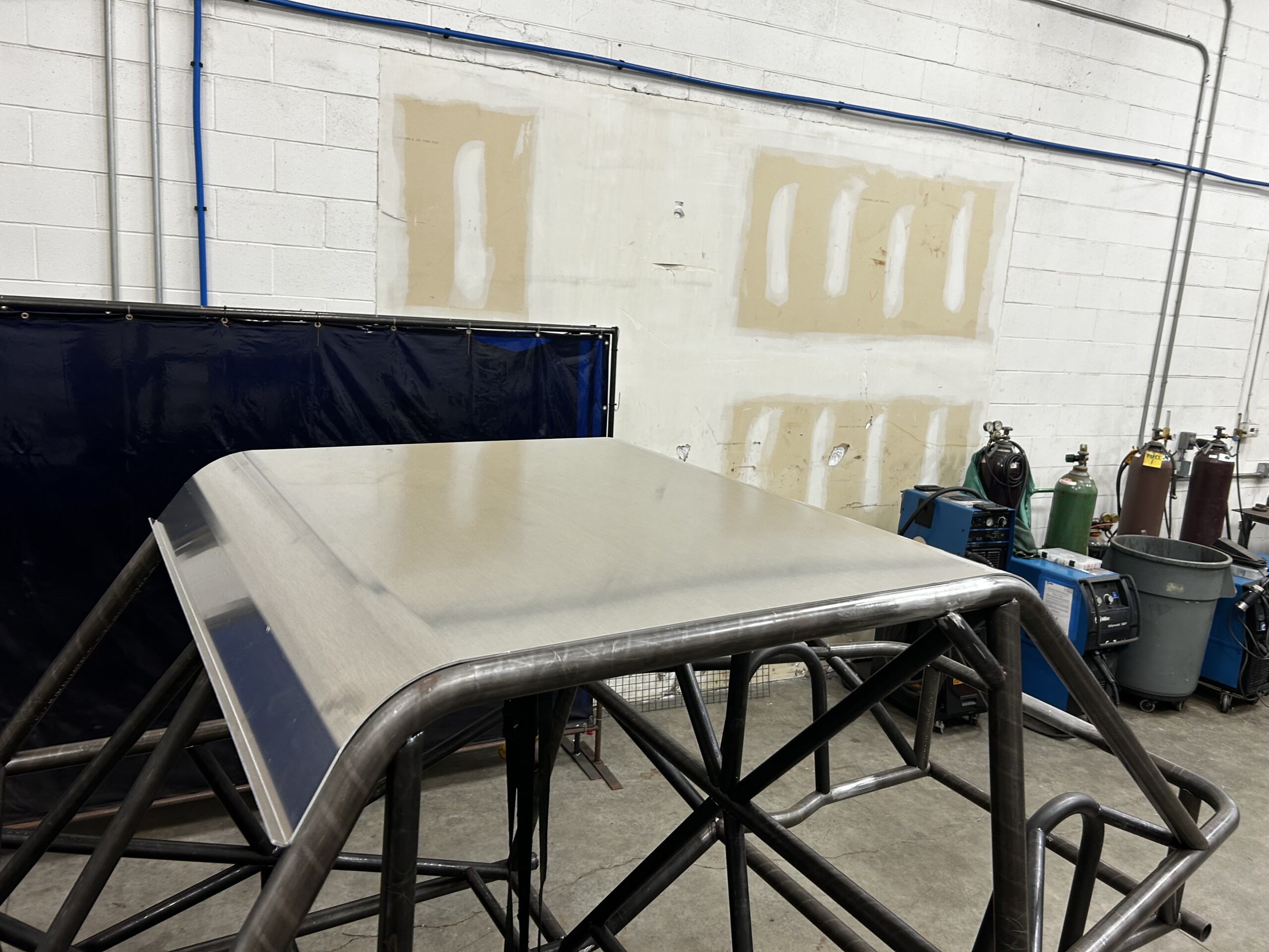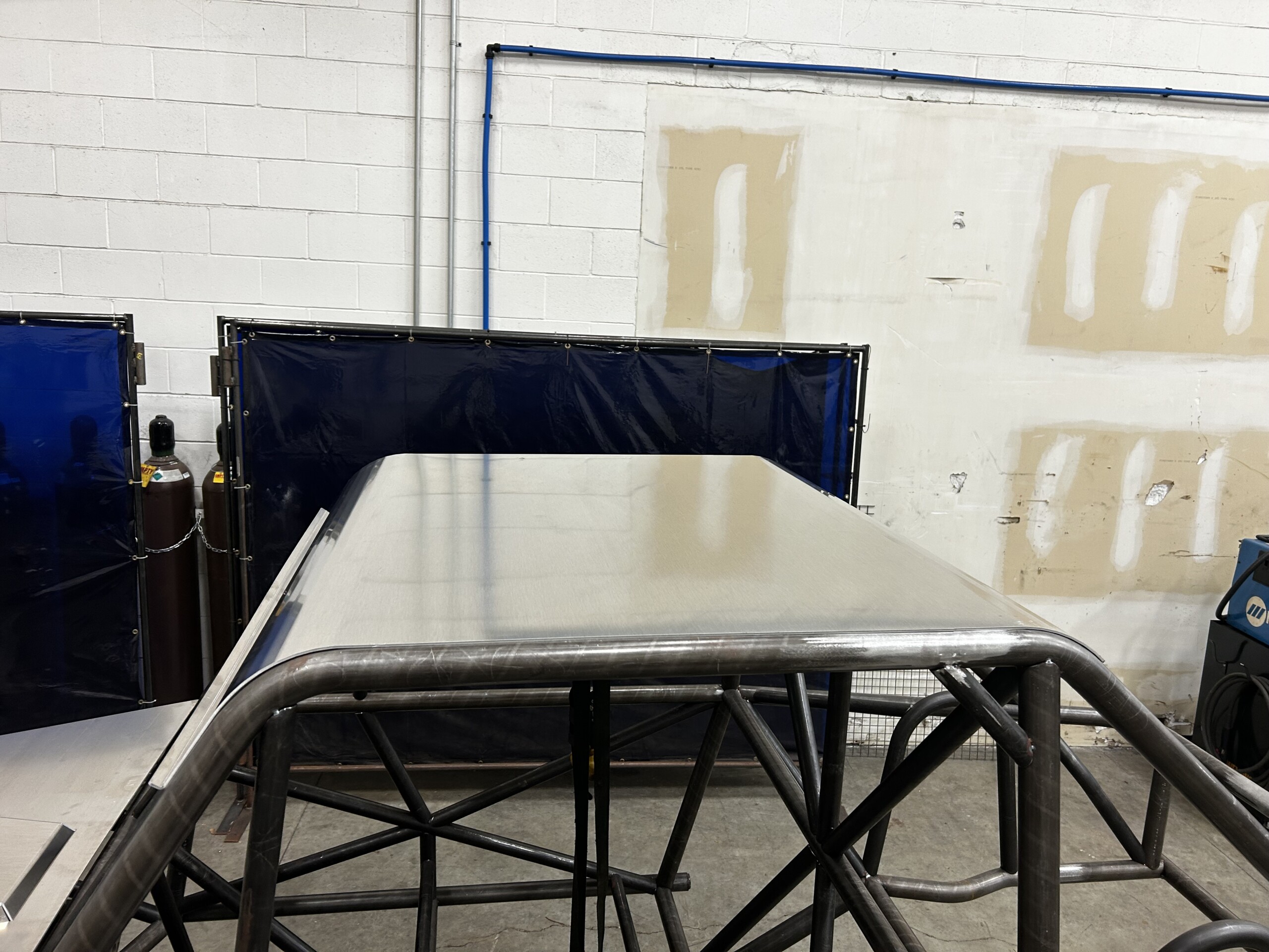 Precision laser cut and CNC formed 1/8″ aluminum roof panel that is ready to bolt in and weld tabs. Very minimal fit up and fabrication involved to get a roof on your ALPINE chassis. Bump formed to fit the contour of the chassis bends and a cool front visor with bent up ‘rain gutter”.